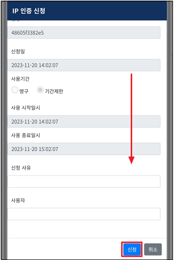 ‘IP 신청’ 버튼 클릭